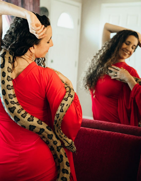 A unique experience for human beings to commune with trained temple serpents, and receive their deep, powerful medicine. It is an opportunity to get very present, sensually embodied, turn inward, shed old ideas or ways of being, unwind stuck habitual patterns or even traumas, gain clarity, and be brought into the authentic depth of your Being! A magically divine experience!